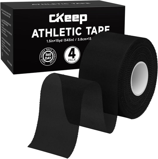 CKeep Athletic Tape,4 Pack White Sports Tape, Very Sturdy No Glue Residue,Wrist Ankle Tape for Muscle,Climbing,Boxing,Athletes,Baseball Bats,Strains,Sprains,Injuries